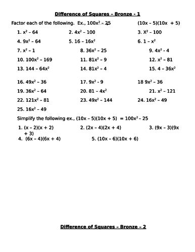 By the way, concerning worksheets multiplying difference of squares, below we can see particular variation of photos to add more info. Factor the following difference of perfect squares. Click show answer underneath the problem to see the answer. Found worksheet you are looking for? Because of this, a sequence of factoring methods.